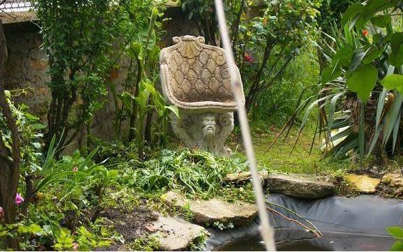 Aujourd'hui au hasard d'une promenade, je remarquais 2 lions gardant l'entrèe d'un chemin: au détour de l'allée une chaise de pierre de toute beautée sise au bord d'un bassin, accueillie mon auguste postèrieur, le temps de voir évoluer les carpes koï