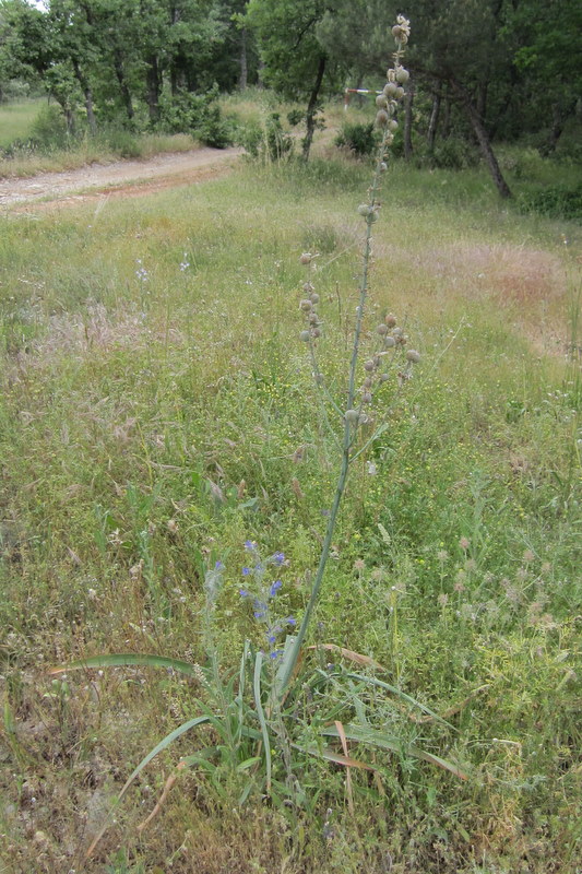 Je l'ai photographiée près de Rians (83) on dirait qu'elle avait des fleurs claires (blanches ou rosées) avec des pétales allongées :
