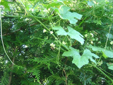 j'ai cette plante qui court sur les thuyas, quant on l'a touche, elle colle