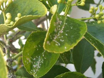 Je possède cette plante dont je n'ai plus le nom. Je l'ai depuis deux ans maintenant et cela a toujours été, mais maintenant des petits traits blancs (larves?) sont apparus sur le tronc, le dessus et le dessous des feuilles. Savez-vous ce que c'est? comment les traiter?