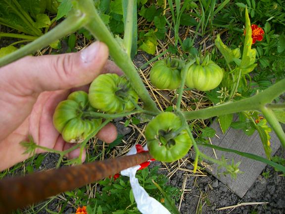 au potager tout roule. nous avons mangé nos premières tomates il y a 2 jours. 3 c peu mais c si bon!