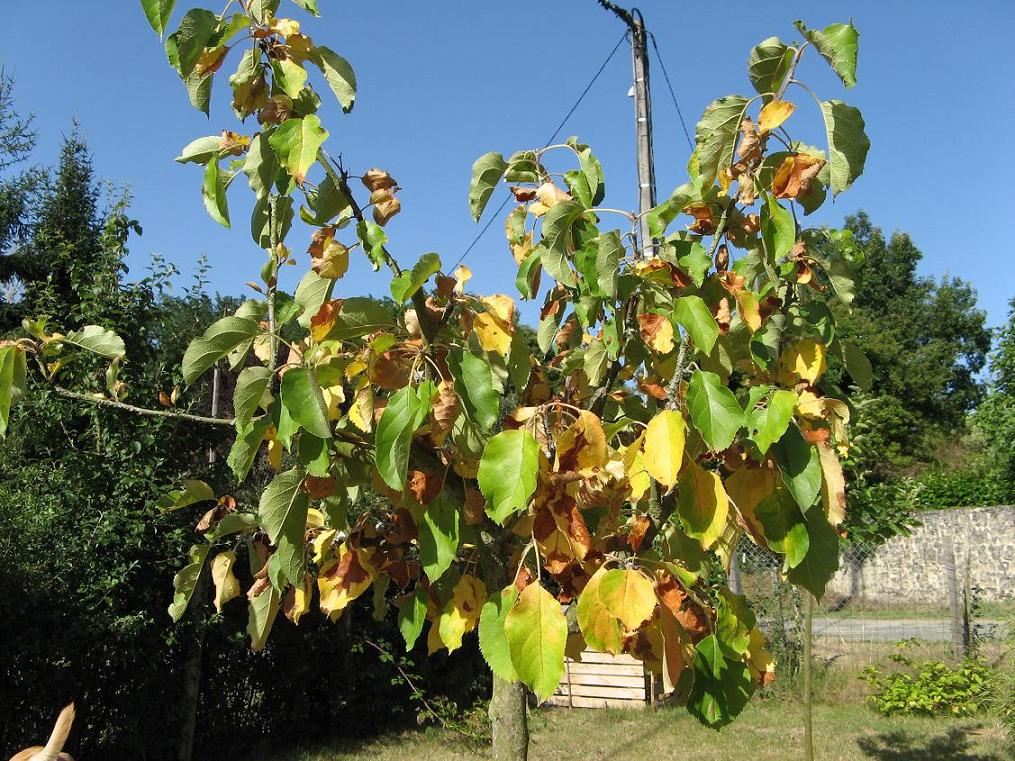 Ces deux pommiers ont été plantés en novembre 2007 et ils n'ont eu aucun problème hormis celui-ci sur un des deux.