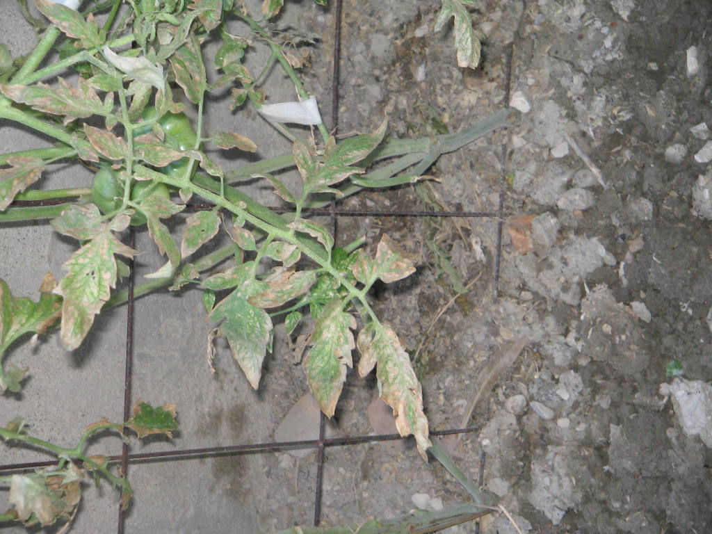 Il faudrait passer avec un produit curatif genre "diamétan" (mais je vois des tomates déjà bien formées ! qu'il ne faudrait pas manger avant 10 jours.)