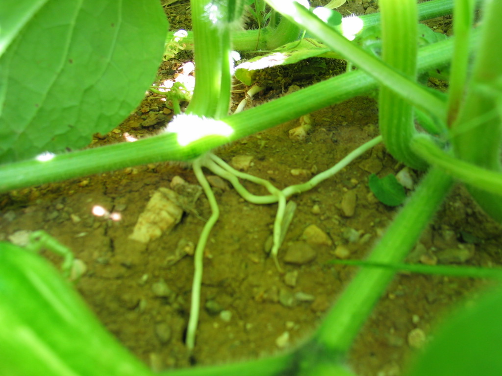 ce sont des racines. les cucurbitacées ont la faculté d'émettre des racines a chaque nœud. cela lui permet d'avoir accès a de nouvelles source de nutriments.