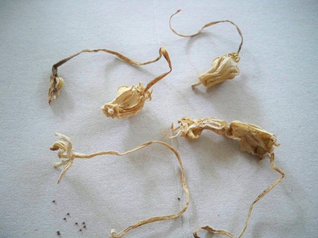 Je n'ai pas de photos de la plantes ,mais des fruits avec les graines,récoltés dans une serre de plantes éxotiques en juillet de l'année dernière.Plante basse dans les 15cm,fleur blanche a 5 pétales,de la fleur à la capsule avec les graines la tige mesure + de 7 cm et la capsule 1,5 cm,