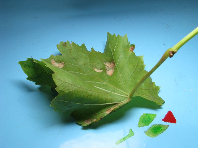 Ces feuilles sont peu nombreuses, et les dommages sont apparus après ceux sur les grappes
