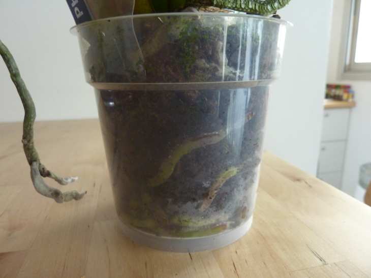 . J'ai peut être fait une erreur, je l'ai arrosé une fois (en 1 semaine, ce que recommande pourtant la petite notice qui est avec). Elle est dans des écorces.