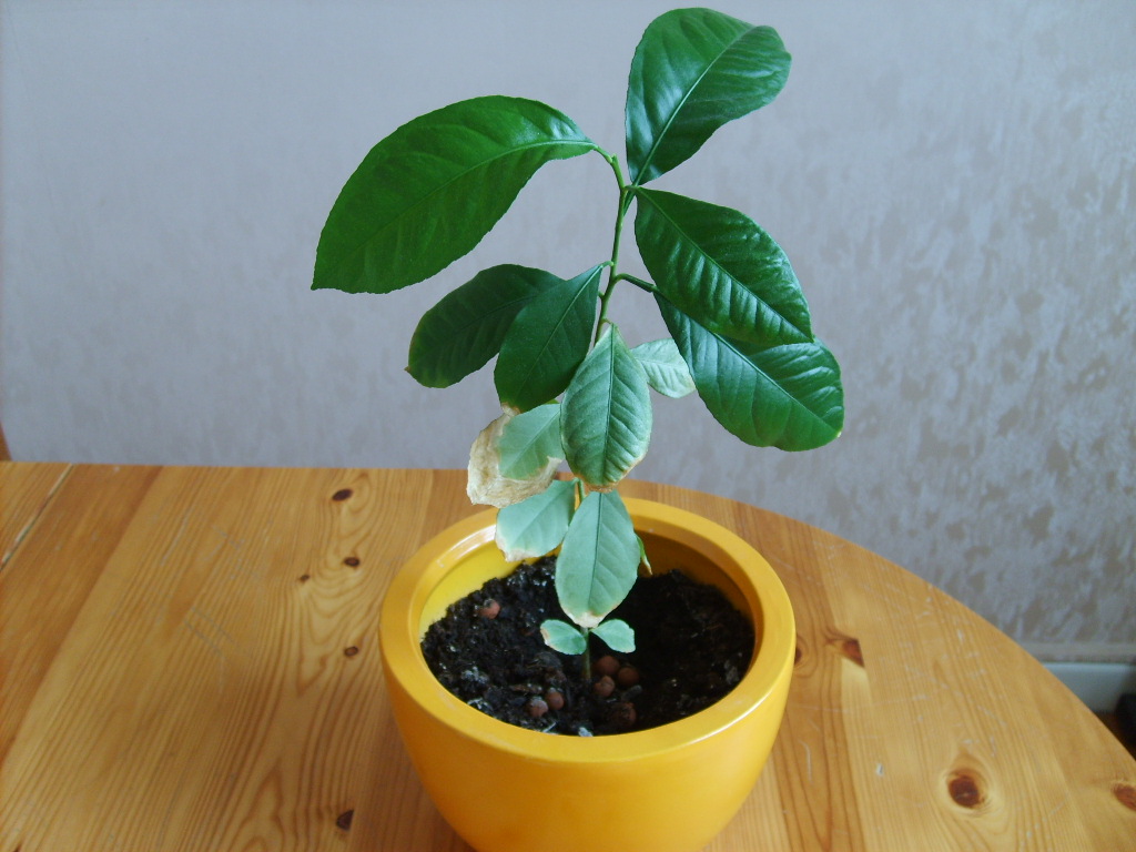 J'ai planté un pépin de citron voilà maintenant 2 ans, et j'ai donc un petit citronnier en pot, dans mon appart. Il s'est développé doucement mais surement, et à atteint une taille respectable. Je précise que je l'ai déjà rempoté une fois, dans un pot plus grand, ce qui lui a manifestement fait du bien.