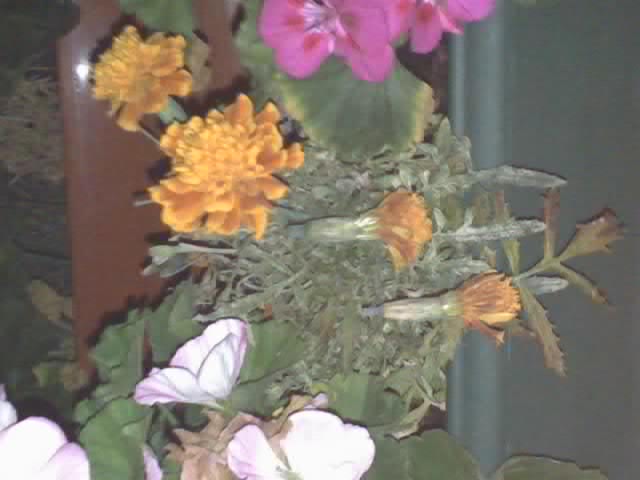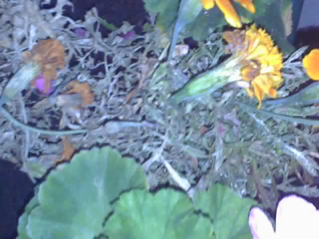 Bonjour à tous, voila le problème: j'ai planté 10 petits pieds d'oeillets d'inde en mai et jusqu'ici pas de problème, mais depuis une dizaine de jours, 9 pieds ont les feuilles marrons :shock: elles étaient bien vertes mais là les pieds sont moches et mourrant. Les pieds sont plantés entre 2 pieds de géraniums. Quelqu'un saurait-il d'où vient cette anomalie ?? Merci d'avance et voila les photos.