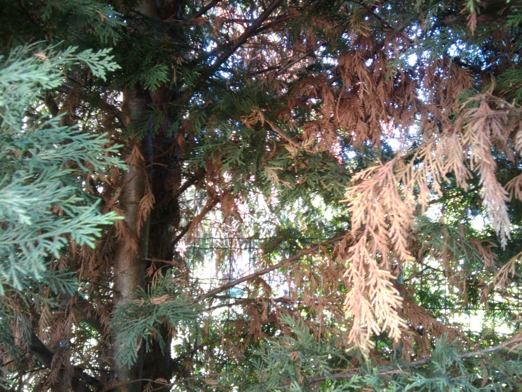 Je crois que mes thuyas sont malades : au printemps, je me suis dis que le mauvais entretien des précédents proprio en était peut-être rexssponsable, mais là, je crains le pire : ce n'est pas encore très invasif, mais dans ma haie (environ une dizaine de thuyas, +/- 10 ans, jamais taillés _ 4 à 6 m de haut) qui n'est déjà pas trop dense puisque jamais été taillée, des branches sèches plus au moins à mi-hauteur, principalement en 3-4 endroits. Je n'ai pas encore réussi à identifier s'il s'agit de bupestre genévrier (il a pas l'air cool lui), et j'espère pas car si j'ai bien lu, on ne peut rien faire contre lui.