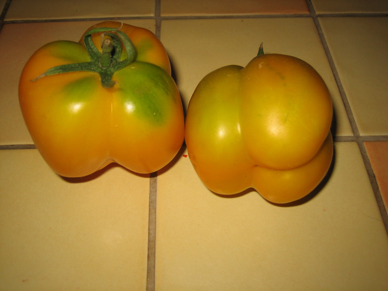 la yellow stuffer!grosse tomate jaune presque vide à l'intérieur!plus qu'a y mettre la farce!