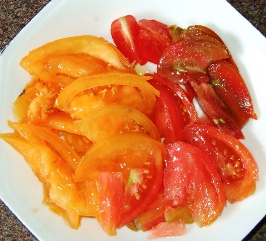 je n'avais goutée que des tomates rouges jusqu'à ce jour et j'ai été un peu déstabilisée par la différence de goût de toutes ces tomates :roll: