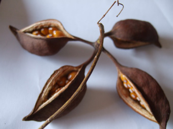 J'ai découvert cet arbre lors de vacances à Chypre et je ne sais pas son nom. Il n'est pas très grand 3 m. il fleurit en mai et fait des cosses de graines jaunes en juillet.