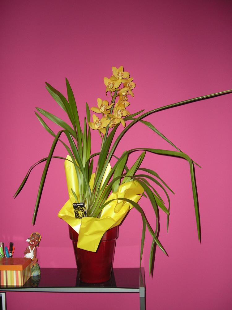En ce moment le cycnoches wine delight qui sort une hampe, il devrait aussi etre parfumé, ça sera la surprise, premiere flo maison depuis que je l'ai acheté défleuri.