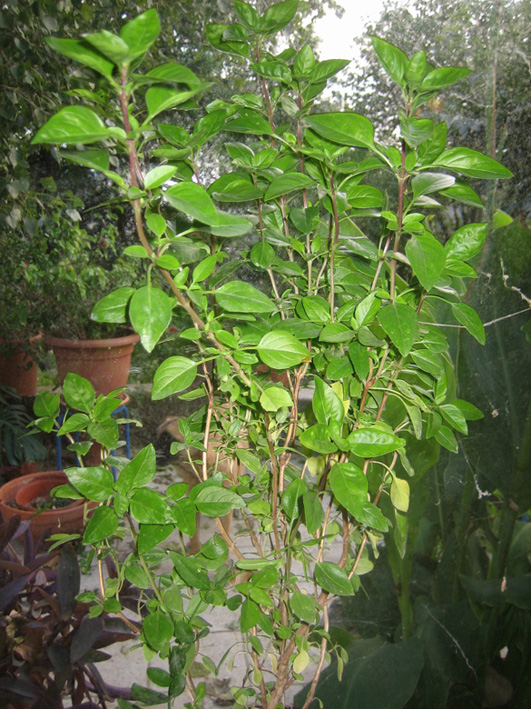 voici le basilic perpétuel: le feuillage a la même odeur, au bout de 2ans, il forme un petit arbuste aux tiges ligneuses. il craint le froid. je le rentre avant mes autres plantes en véranda, chauffée l'hiver à 6/8° la nuit