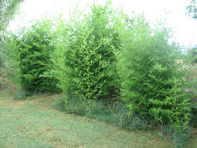 voici ma haie (3 pots plantés en 2008), ms moi je l'arrose régulièrement! bambou qui ne craint pas les acariens, qui est relativement résistant à la sècheresse, hauteur + de 5m à maturité(ds de très bonnes conditions il peut monter à 9m!! ms je ne l'ai jamais vu ici), -20°, facilement reconnaissable à ses noeuds empilés, prend une couleur dorée la 2° année au soleil