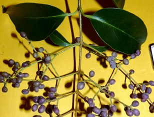 feuilles un peu coriaces, lisses sur les bords, avec ces "grappes de fruits"...
