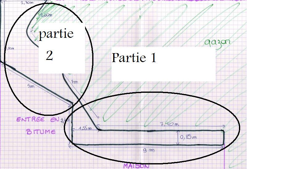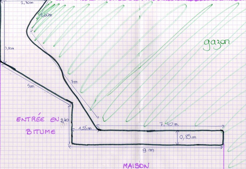 Je vous ai fait un plan (pas très beau) de l'espace à aménager. Je n'ai pas de préférence pour les couleurs, les arbustes... La partie est celle délimitée en noir.