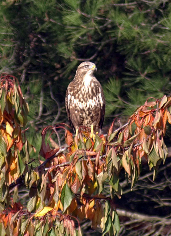 Voici une buse variable que s'est posée hier sur mon vieux cerisier. Coup de bol de l'avoir vu, je me suis mis accroupi contre le rebord de la fenêtre pour la photographier et elle a quand même réussi à me voir j'ai l'impression...