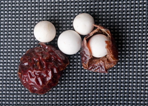 On est de la Réunion, on a trois petits chiens qui ramènent souvent des trucs dans notre jardin. Hier matin, j'ai trouvé dans l'herbe pleins de petites billes blanches qui rebondissent si je les frappe au sol et à coté de cela des coques marrons dans lesquelles il y avait certaine de ces fameuses billes. Les billes sont très dures, pour les casser je dois taper au marteau et il n'y a rien à l'intérieur. On ne sait pas ce que c'est, peut-être une mauvaise blague. On espère que quelqu'un pourra nous éclaircir. Merci à vous :D