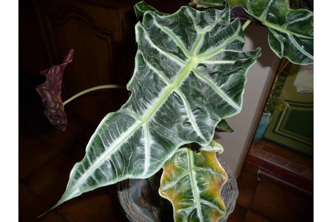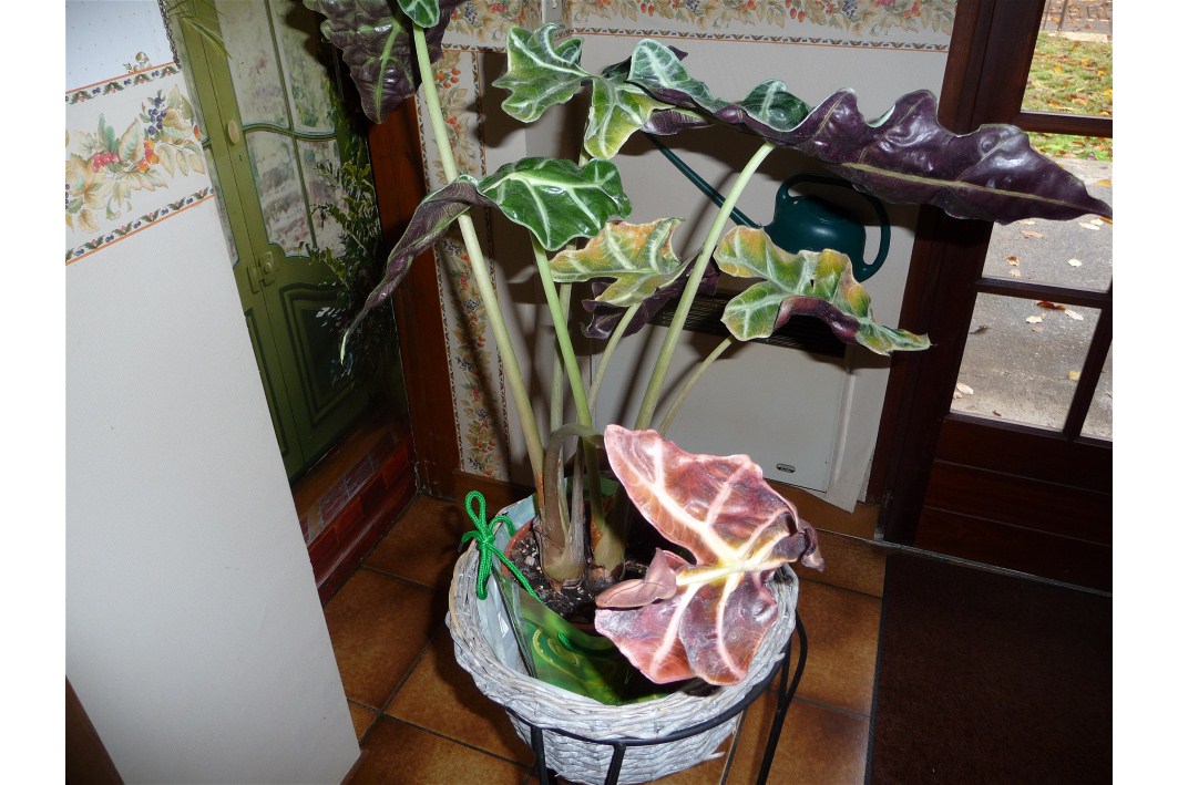 un très bel Alocasia sanderiana peut-être la variété "Polly"