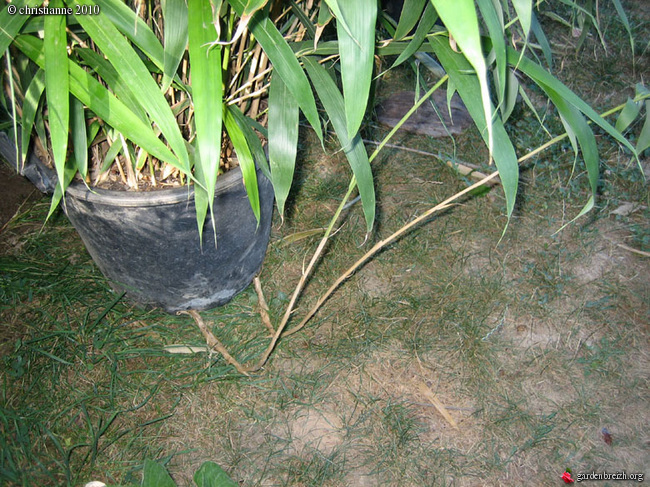 Avec un fossé le rhizome ne plonge pas comme avec la BAR. Certains bambous nains descendent à + 1 m pour passer sous la BAR....Le bashania fargesii (moyen) a la réputation de passer quoique qu'il arrive...