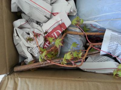 Bref, la végétation des acers a énormément souffert et l'un d'entre eux avait perdu 80% de son feuillage ... mais le feuillage n'était pas au fond du carton ?! autant dire que je suis sceptique sur le produit expédié. Un autre était complètement écrasé et un autre avec perdu ses cimes (3 branches cassées) ...