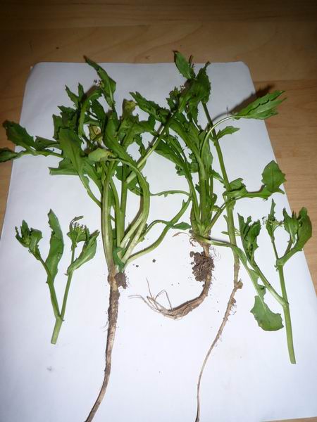 Une brassicacee, puisqu'on ne dit plus crucifère. Les feuilles ressemblaient à du raifort, mais les racines paraissent trop minces. (?).