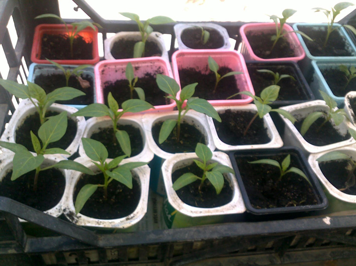 poivrons semis fin janvier et d'autres février. pas mal de pertes en poivrons sauf les poivrons chocolat toujours aussi vigoureux et les yolo wonder très faciles à germer aussi. des difficultés avec pantos (un seul rescapé) et purple beauty (1 seul aussi)