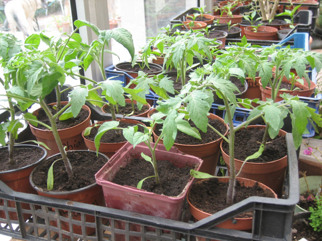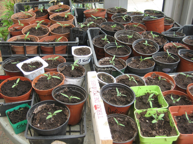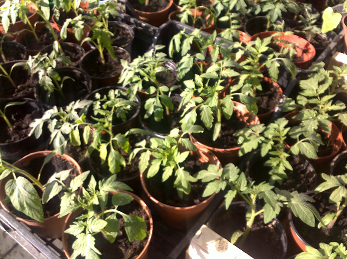 les semis de tomates restant après prélèvements que je vais apporter au troc de villelaure le 3/4