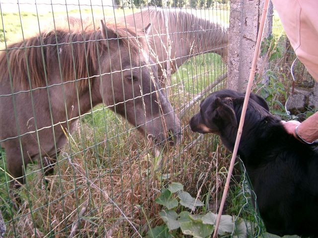 le petit bisou du soir entre Urania l'une de nos chiennes et le poney qui maintenant a grandi