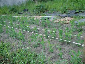 puis il y a 10 jours j'ai resemé 2 rangs de petits pois "petit provençal", qui commencent à sortir depuis hier; et j'ai planté des bulbes de glaieuls.