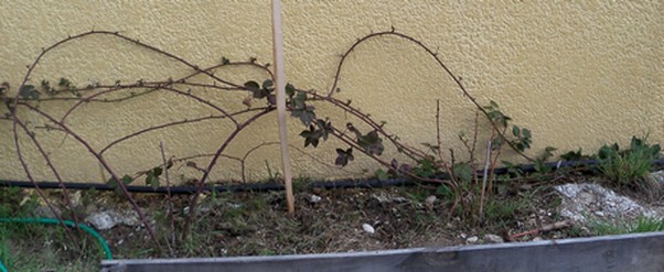 Tu peux voir que pour l'un comme pour l'autre les branches s'étalent sur plusieurs fils ; je te montre ces photos pour que tu puisses voir ce qu'un roncier peut donner après qq années ; perso je ne pensais pas que les branches pouvaient être si longues,