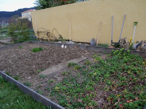 les framboissiers il n'y avait que là que j'avais de la place , je vais leur mettre des tuteurs et essayer de le "domestiquer " quand ils seront trop envahisssants .