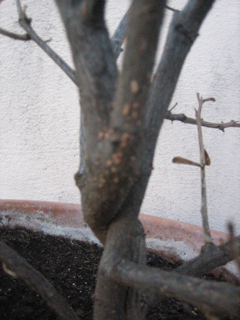 j'ai un petit soucis avec mon citronnier 4 saisons. Mes parents me l'ont rapporter cet hiver (il était dans le var) mais il avait prit un coup de froid. Je lui ai mis une bâche de protection d'hiver, et je ne l'ai pas trop arroser. Il y a qql semaine, j'ai mélanger le terreau d'agrume avec du nouveau terreau d'agrume et j'ai planter des billes d'engrais. Le week-end dernier, j'ai enlever sa protection, j'ai retirer toute les feuilles jaune marron qui sont rester accrocher tout l'hiver et je l'ai mis au soleil (de Toulouse). Ce qui m'inquiète c'est qu'il n'y a même pas une seule minuscule pousse. Est-ce normal? De plus sur la base du tronc il y a qql point orange, est-ce inquiétant?