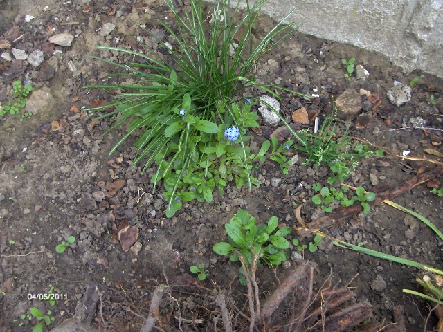 La dernière avec les petites fleurs bleues sont des miosotis, très facile à déplacer après la floraison, c'est pas fragile ça repart rapidement et comme ça graine bien il en repousse souvent tous les ans, moi j'en ai tous les ans et je n'en ai jamais acheté :D les oiseaux ont dû me les amener ou bien dans le terreau, je les laisse grandir un peu et les repique à des endroits où je préfère qu'ils soient, car bien sùr ça graine n'importe où, j'en mets aussi en pot, comme ça ils ne grainent pas pour rien :). il en existe aussi des roses, blanc et plusieurs sortes de bleu, les fines feuilles derrière le miosotis je pense à un crocus sûrement defleuri.