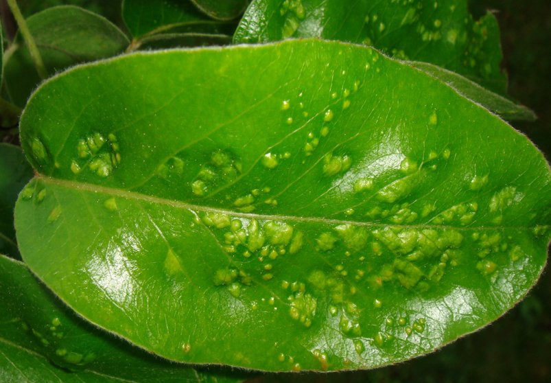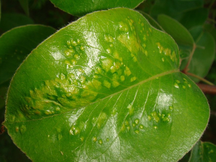 je viens vers vous car je viens d m'apercevoir que mon jeune poirier a des feuilles avec des drôles de petits points plus clair comme décolorés et en relief sur ses feuilles, ( il y a aussi pas mal de fourmis qui se promènent sur les branches) j'ai cherché un peu sur le net mais je n'ai pas vraiment trouvé de réponse satisfaisante!