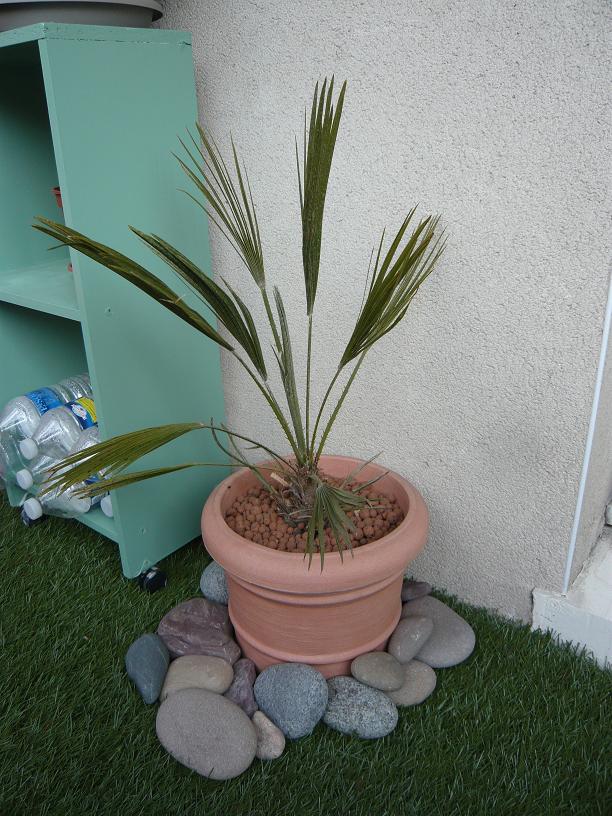 j'avais lu quelque part qu'il fallait planter les palmiers dans un pot percé et surélevé légèrement le pot avec des cales pour que l'eau ne reste pas sous le pot.