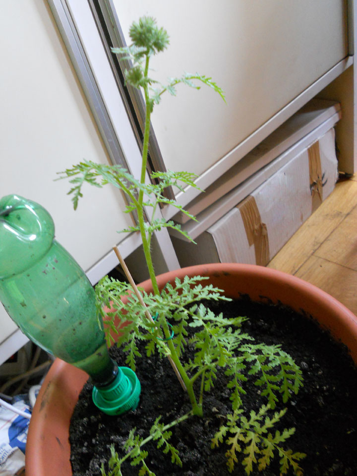 La boule en haut, on dirait un bouton prêt à éclore ? Le cerfeuil fait pas de fleurs ?