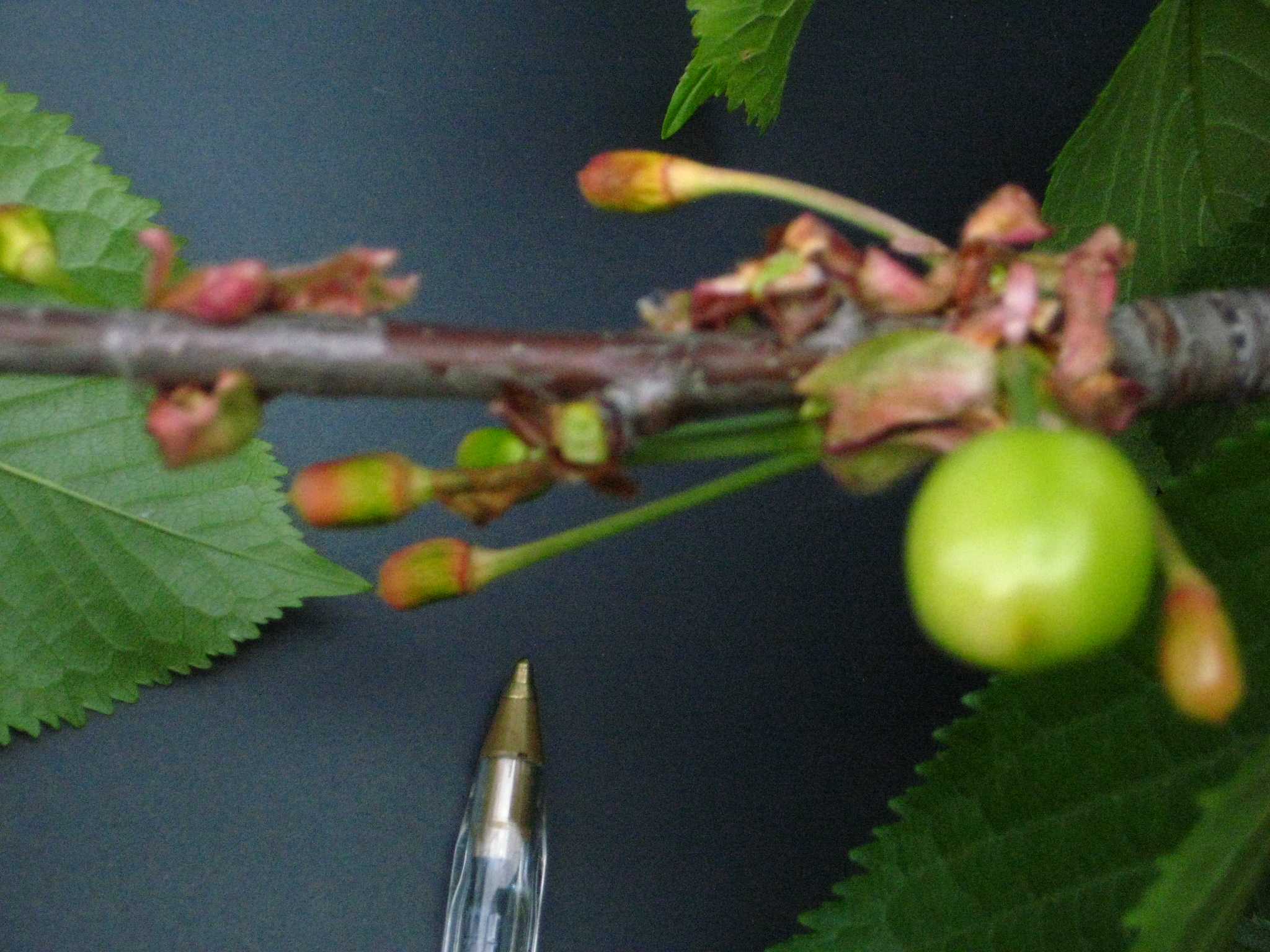 Par ailleurs, je viens de constater un phénomène cousin sur mon cerisier. Là, pas de nécrose (pas encore), mais les fruits virent au jaune et ne se développent pas (75% de dégâts).