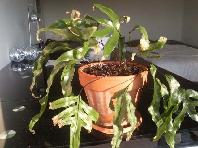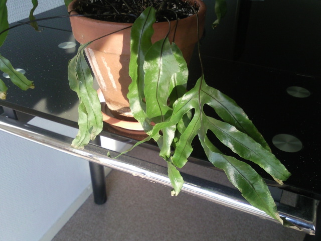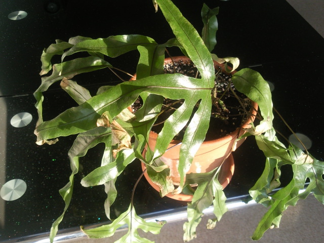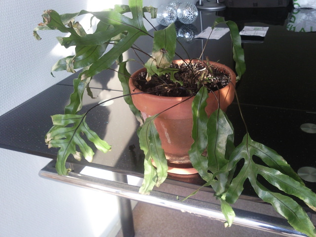 NB: probablement un Phlebodium aureum ou un Pteris? il ne faut pas que le rhizome soit trop enterré, on doit voir la base avec les rhizomes horizontaux