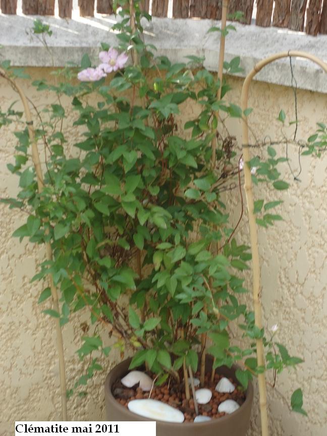 Je vous explique la situation: on a acheté il y a 1an 1/2 cette clématite que l'on a mis dans ce pot sur notre terrasse exposée sud-ouest. Le bas était très ombragé et le reste bien au soleil dès 10h du matin.