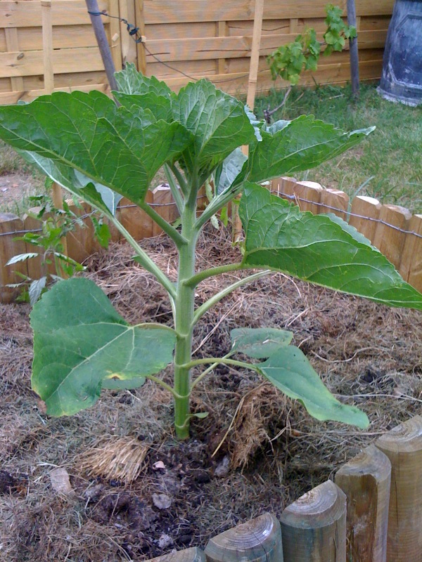 Sur du compost frais et avec un peu d'eau, en plant isolé comme celui-ci, il peut atteindre 2 mètres ; il va falloir tuteurer; vous pouvez le garder, les oiseaux sont friands des graines, en particulier les petites mésanges.