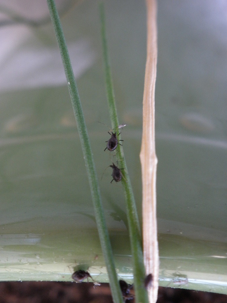 Comme vous pouvez le lire dans le titre, j'ai découvert ce midi ma ciboulette complètement infestée de petites bêtes noires! Effrayant! J'ai pensé, au premier abord que c'était de la terre, mais en secouant les tiges je me suis aperçu qu'elle était couverte de pucerons (?)