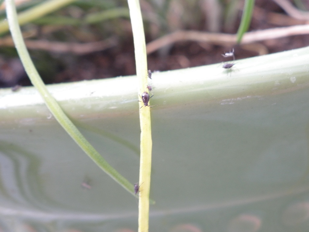 Comme vous pouvez le lire dans le titre, j'ai découvert ce midi ma ciboulette complètement infestée de petites bêtes noires! Effrayant! J'ai pensé, au premier abord que c'était de la terre, mais en secouant les tiges je me suis aperçu qu'elle était couverte de pucerons (?)