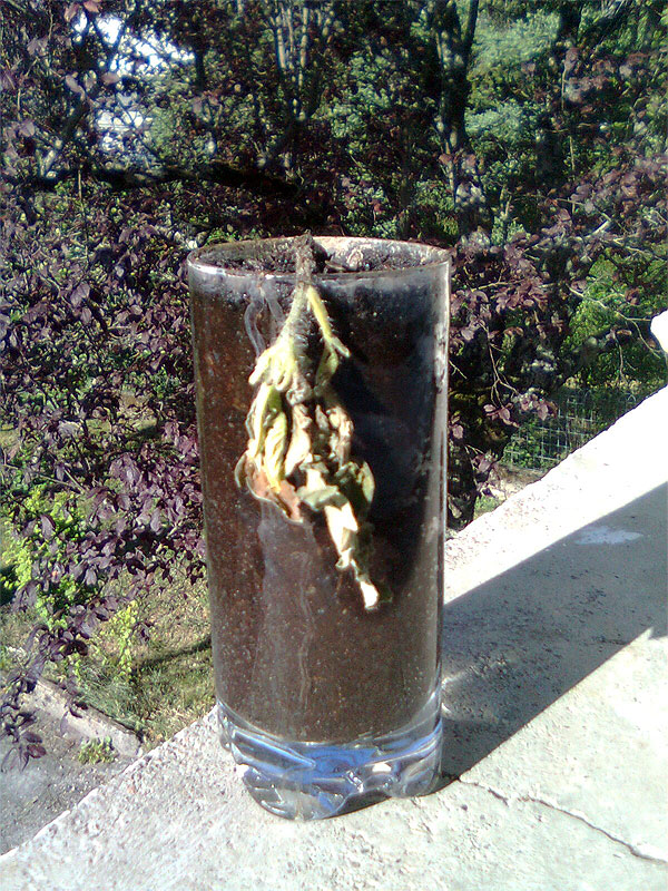 - De l'air dans le terreau, donc manque d'eau, cause verre non percé au fond (voir ce que j'ai expliqué plus haut),