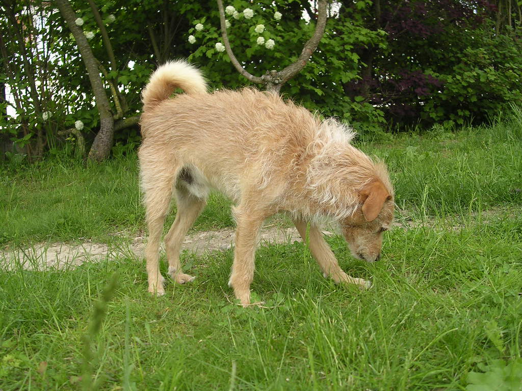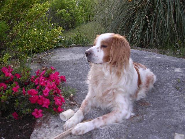 Nous avons deux chiens, Naf-Naf l'épagneul, 14 ans, qui a toujours vécu ici, et Erwin le p'tit machin aux pattes de lièvre, 12 ans, que nous avons adopté il y a 3 ans, après qu'il ait vécu de nombreuses péripéties. Nous avons aussi beaucoup d'oiseaux, merles, moineaux, chardonnerets, verdiers, tourterelles, etc. L'hiver on leur donne à manger et le reste du temps ils trouvent tout ce qu'il faut au jardin. De temps en temps nous avons un lapin en pension, celui d'ex-madame quand elle part en vacances chez son chéri. Et il y a aussi un garenne qui vient régulièrement.