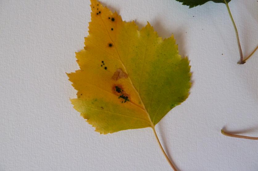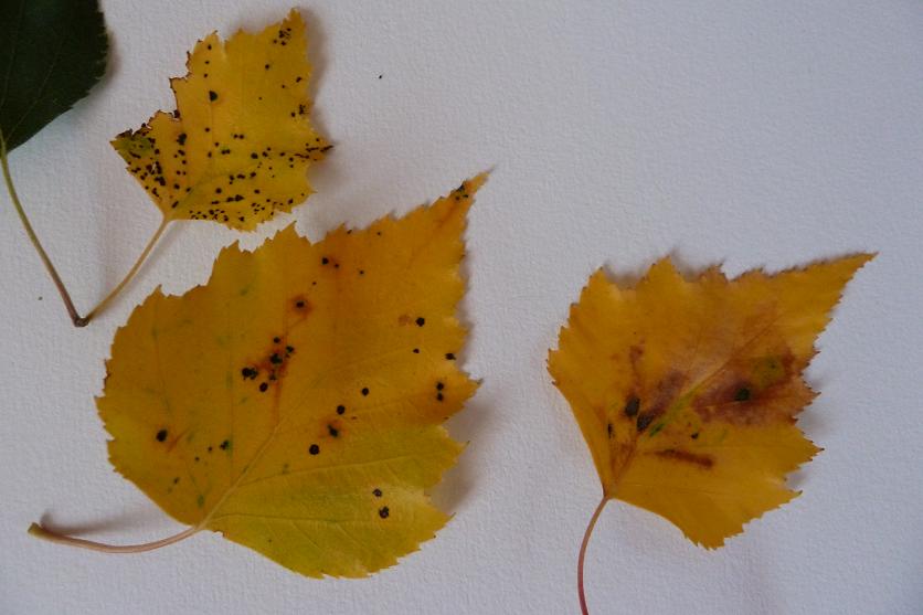 :?: J'ai dans le jardin , récupéré tout petit, soi-disant un bouleau( j'attends de savoir si c'est un blanc ou non) , mais des feuilles me paraissent plutôt bizarres .savez-vous de quoi il souffre ?? :roll: