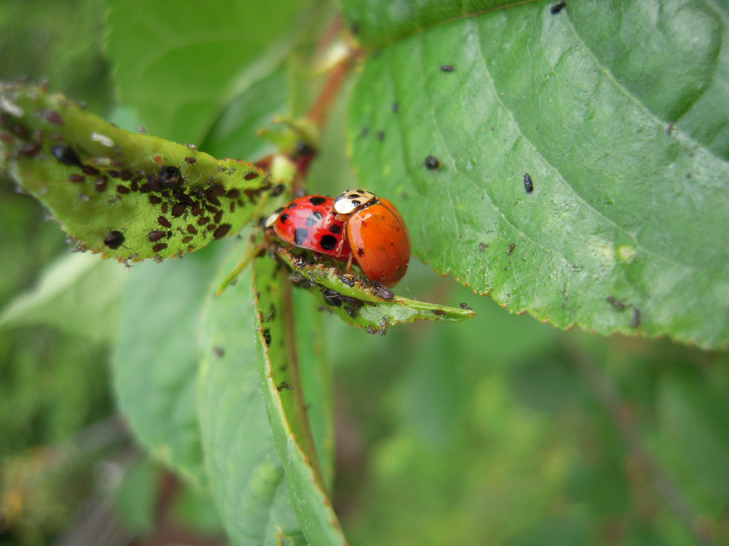 Il faut faire attention aux fourmis qui protègent activement les pucerons contre les coccinelles, en effet les fourmis font des élevages de pucerons pour en récolter le miela.