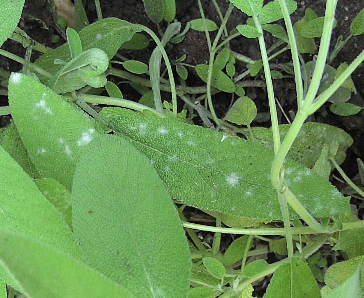 ma sauge me cause des soucis (voir photo) des tâches blanchâtres apparaissent quel est le problème comment la soigné et la plante est-elle encore comestible.